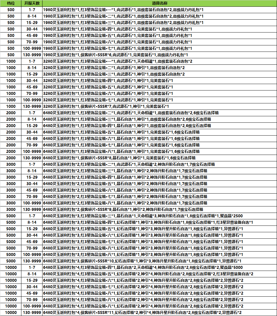 参与方式:活动期间,玩家单日充值累计达到指定金额,可获得该档位最高档的奖励。单日只可领取一次。